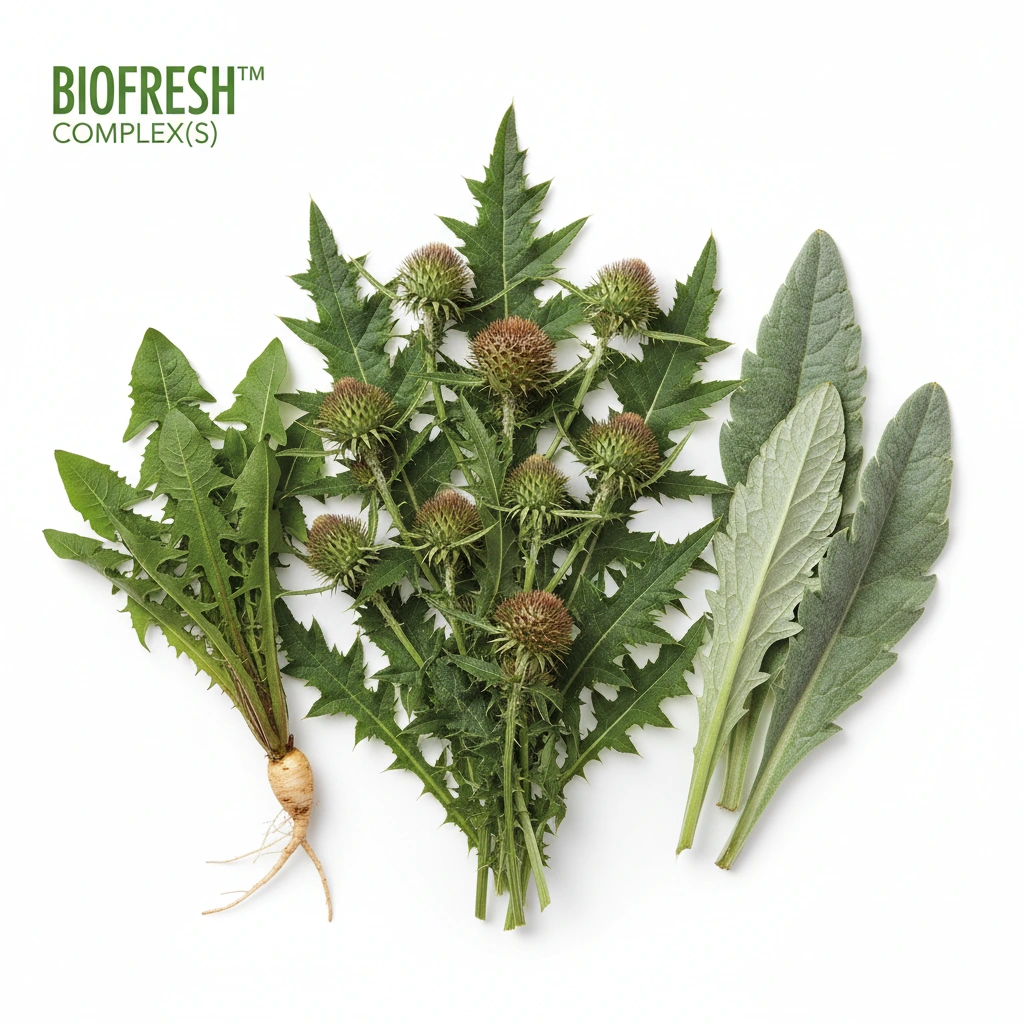 The health benefits of BIOFRESH™ CLEAN COMPLEX(S) are primarily driven by its rich profile of bioactive compounds, each contributing to a multifaceted mechanism of action. Silymarin, the active complex in milk thistle, is a potent antioxidant and hepatoprotective agent, demonstrated in numerous studies (e.g., Flora et al., 1998, Journal of Hepatology) to stabilize liver cell membranes and promote liver regeneration. Dandelion root contributes sesquiterpene lactones and phenolic acids, which support bile flow and act as a mild diuretic, aiding in renal excretion and reducing water retention, as referenced in traditional European pharmacopoeias. Artichoke extract, rich in cynarin and chlorogenic acid, stimulates bile production and flow, crucial for fat digestion and the elimination of toxins via the gastrointestinal tract (Kirchhoff et al., 1994, Arzneimittel-Forschung). Furthermore, the complex often includes a blend of soluble fibers, such as inulin or psyllium, which act as prebiotics to support a healthy gut microbiome and facilitate regular bowel movements, essential for toxin elimination and overall digestive integrity. These compounds work synergistically to enhance the body's intrinsic detoxification pathways.