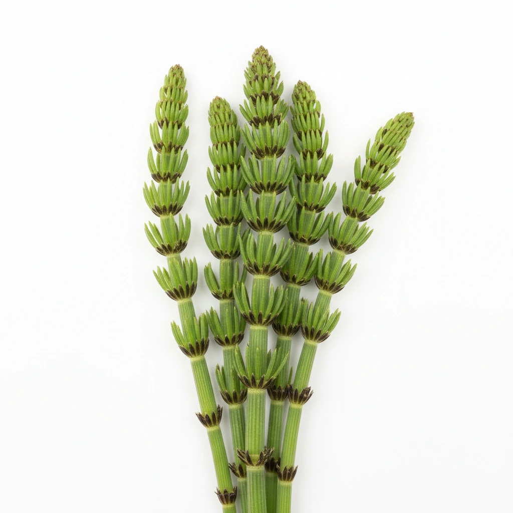 Horsetail Powder, derived from the aerial parts (leaf and stem) of Equisetum arvense, is a botanical ingredient renowned for its unique phytochemical profile and historical use. This ancient plant, a survivor from the Carboniferous period, is characterized by its distinctive segmented stems and lack of true leaves. Our powder is meticulously processed from carefully selected plant material, preserving the integrity of its inherent compounds. Equisetum arvense is particularly notable for its exceptionally high concentration of silica, a crucial trace mineral, alongside a rich array of flavonoids, phenolic acids, and saponins. Historically, various cultures have utilized horsetail for its purported health-supporting properties, ranging from its application in traditional remedies for bone and connective tissue health to its use as a natural diuretic. The fine, green to brownish-green powder offers formulators a versatile ingredient, embodying a legacy of traditional wisdom backed by modern scientific interest in its unique composition.